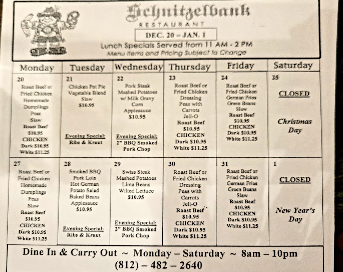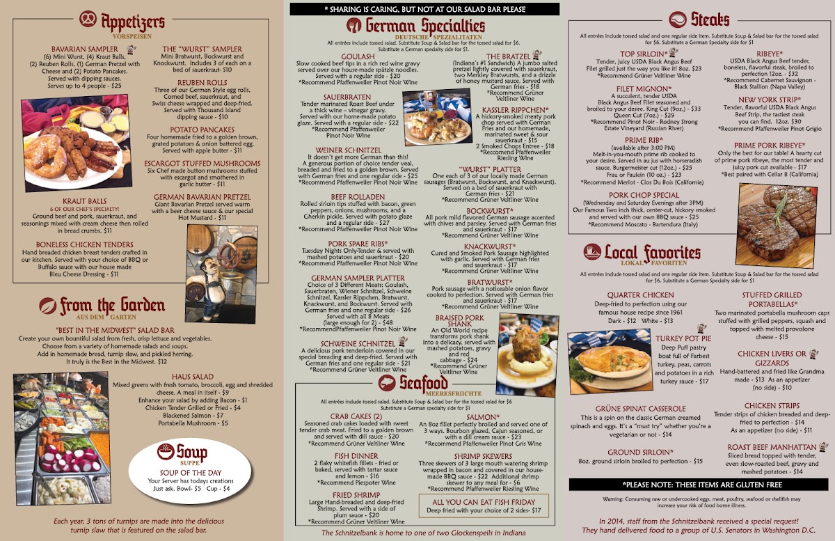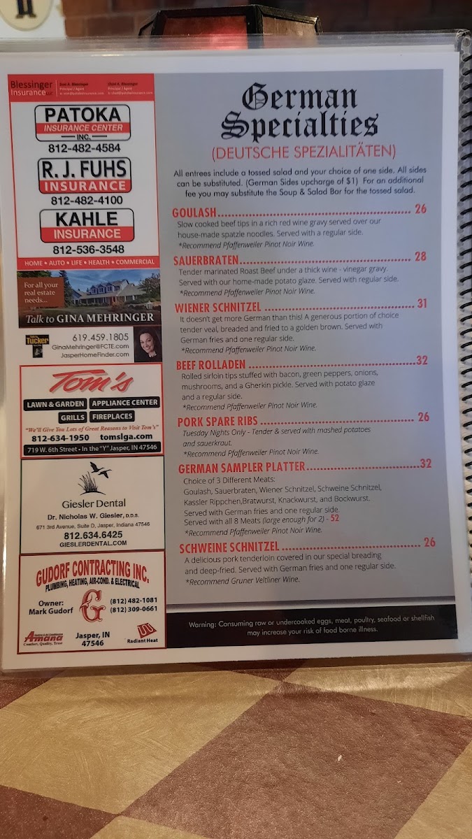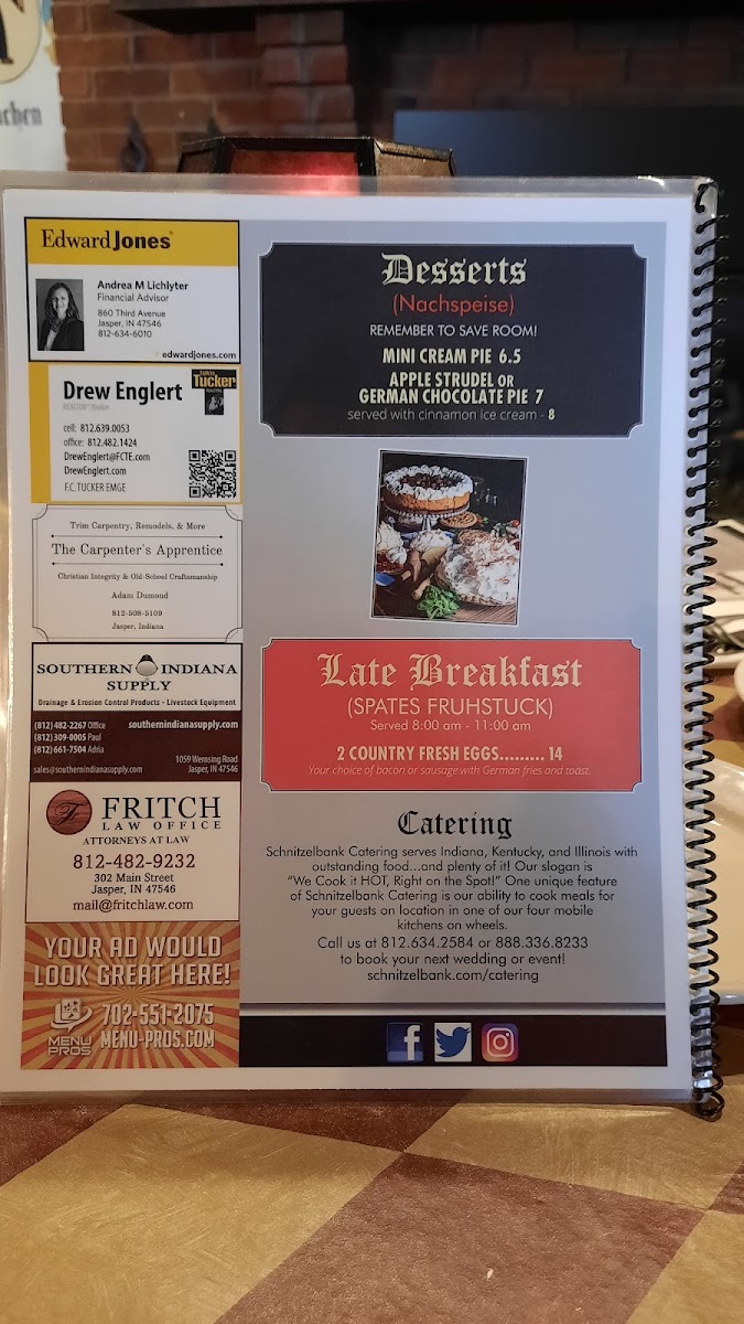 Welcome to Schnitzelbank, a culinary gem nestled at 393 Third Ave, Jasper, IN. This charming eatery is renowned for its authentic German cuisine and vibrant atmosphere. Guests are greeted with a diverse menu that highlights classic favorites such as schnitzels, hearty meat platters, and delightful sides like American fries and goulash.